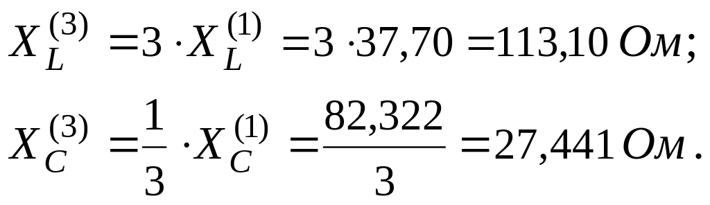 Реактивные сопротивления индуктивности и ёмкостей токам заданной частоты определятся: