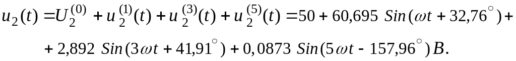 4. Закон изменения во времени напряжения на нагрузке в виде ряда Фурье (мгновенное значение напряжения на выходе цепи):