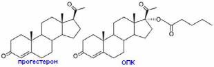 ОПК (оксипрогестерона капронат). По биологическим свойствам сходен с прогестероном. Отличается тем, что имеет остаток капроновой кислоты: