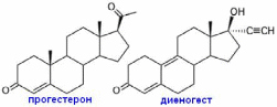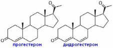 Дидрогестерон. Аналог природного прогестерона. Дидрогестерон по своей молекулярной структуре, химическим и фармакологическим свойствам весьма близок к природному прогестерону. Дидрогестерон не обладает андрогенной, анаболической, глюкокортикоидной, термогенной и эстрогенной активностью (хотя С.Ю. Калинченко отмечает, что он в количестве 20 мг/сут способен снимать маскулинизирующее действие медроксипрогестерона). Способствует сохранению благоприятного действия эстрогенов на липидный профиль крови, не оказывает влияния на показатели коагуляции.