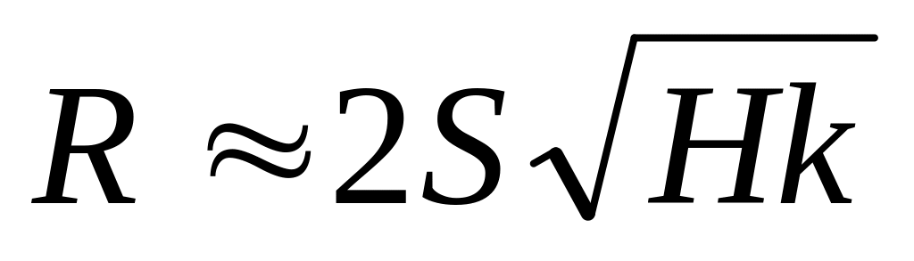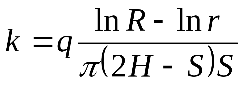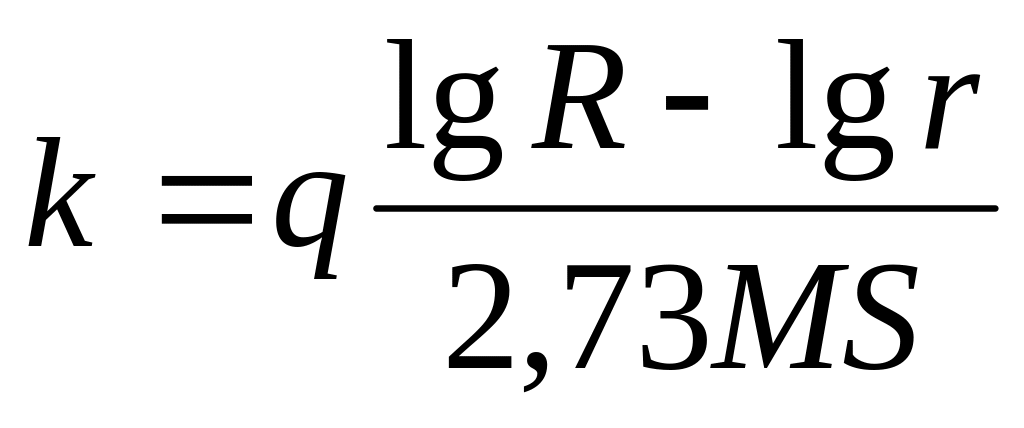 Иногда, при кустовой откачке, когда радиус депрессии неизвестен, после определения коэффициента фильтрации можно вычислить R по формуле Кусакина: