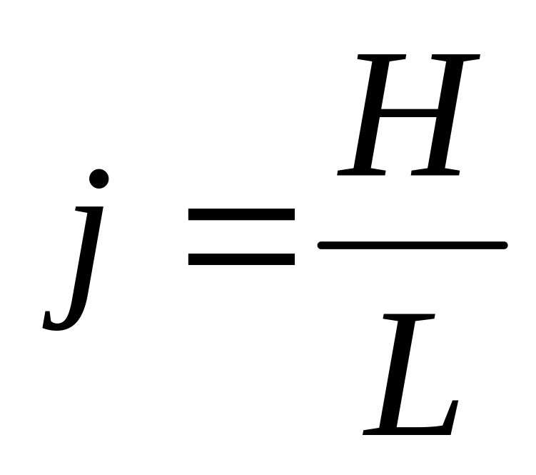 При небольших уклонах (j) депрессионная поверхность имеет вид правильной цилиндрической воронки с осью в центральной скважине и радиусом R, за пределами которого действие откачки не влияет на уровень воды.