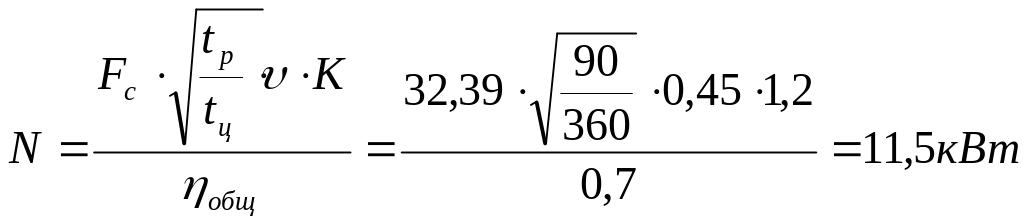 где, K = 0,12 МПа – удельное сопротивление резанью для грунта III категории