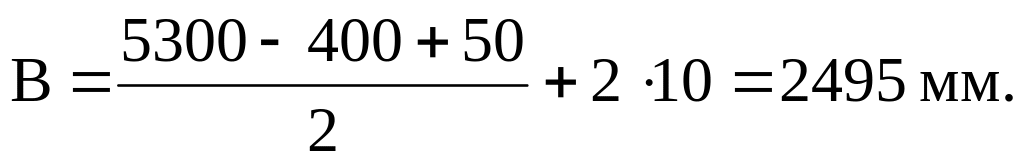 Можно принять между главными балками 2 сетки с шириной В = 2550 мм с действительным нахлёстом с = 50 + (2550 – 2495) = 105 мм.