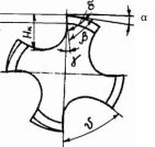 Профиль канавок играет существенную роль в нормальной работе метчика, от него зависит размещение срезанной стружки, прочность метчика и образование необходимого переднего угла. Основными элементами канавки являются глубина канавки Нк и угол канавки υ.