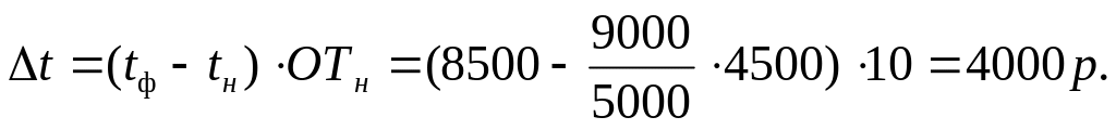 Отклонение по объему определяется как разница в объемах продаж на нормативную прибыль с единицы продукции: (4500-5000)(60-52,5)=-3750 р. (Н).