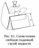 При подаче водных растворов свободным поливом, схема которого представлена на рис.8.1, для определения коэффициента теплоотдачи используется критериальное уравнение (7.10) с соответствующими значениями коэффициентов: