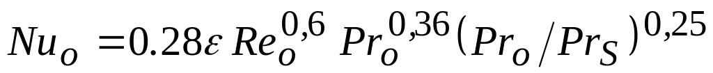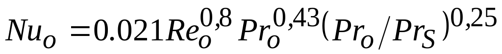 где NuО – критерий Нуссельта; ReО - критерий Рейнольдса; PrO – критерий Прандтля