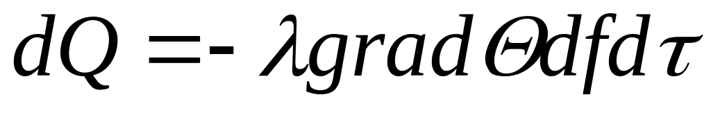Количество теплоты dQ, проходящее через элемент поверхности dF за время d, пропорционально градиенту температуры (1822г - Ж.-Б. Фурье):