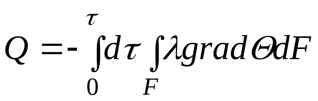 Если требуется рассчитать количество теплоты, прошедшей через изотермическую поверхность площадью F за время , то, интегрируя выражение (1.7), получаем