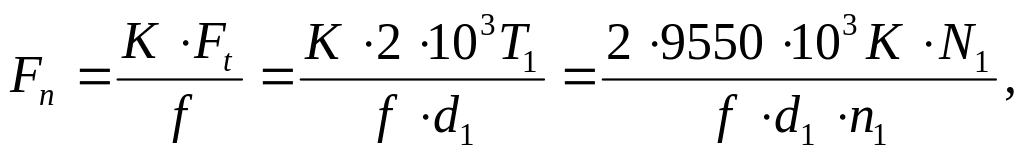 Сила Fn прижатия катков в зависимости от передаваемой нагрузки Ft составляет