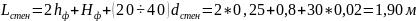 dст.=20 мм– диаметр рабочей арматуры стен; hст. - шаг рабочей арматуры стен (hст. = 0,25 м); mпог.м4 - масса 1 м длины рабочей арматуры стен, Ø20 А 400 (mпог.м4 = 2,27 кг).