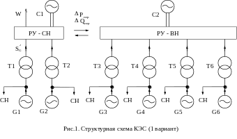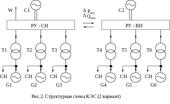 Вывод: на основании сравнения вариантов структурной схемы КЭС по значениям наибольшего перетока мощности через трансформаторы связи наиболее экономичным, с точки зрения стоимости трансформаторов связи, является вариант 1 (рис.1), поэтому принимаем его к дальнейшему расчету.
