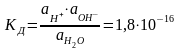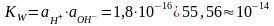 При 220С она равна 1,8·10-16. Активность чистой воды при той же температуре равна примерно 55,56 моль/л. Тогда из выражения (1.1.7) следует: