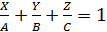 Символы плоскости. Возьмём в пространственной решётке некоторую плоскость, заполненную атомами. Пусть она отсекает по осям координат отрезки А, В и С (рис. 3). Уравнение такой плоскости в отрезках имеет следующий вид: