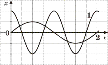 На рисунке представлены графики зависимости смещения х от времени t при колебаниях двух математических маятников. Используя данные графика, выберите из предложенного перечня два верных утверждения. Укажите их номера.