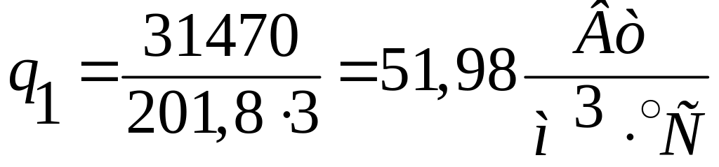Удельный расход теплоты на отопление 1 м2 общей площади определяется по формуле: