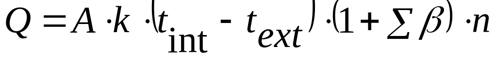 (tint – text) – расчетная разность температур для основных помещений здания, °С.