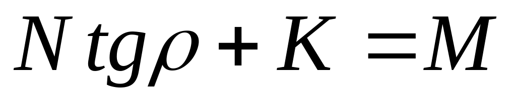 Участок ADBC — призма возможного обрушения прибортового массива. Массу Р прибортового клина ADBC, отнесенную к середине АСВ (точка С), можно разложить на две составляющие: сдвигающую М и нормальную N. Силы, удерживающие прибортовой клин от сдвига по линии АСВ, будут следующими: сила трения, равная N tg ρ, и сила сцепления К.