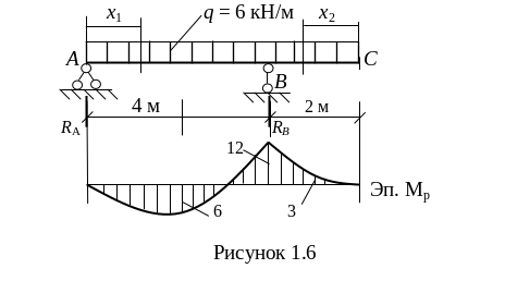 Грузовая эпюра, как правило, имеет более сложный вид. Рассмотрим подробнее построение грузовой эпюры – рисунок 1.13.