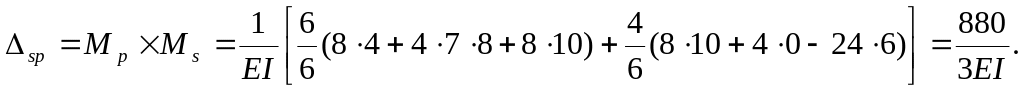 Здесь: ij – сумма всех найденных единичных коэффициентов, ss, - результат перемножения суммарной единичной эпюры самой на себя,ip – сумма грузовых коэффициентов (свободных членов), sp – результат перемножения грузовой эпюры на суммарную единичную эпюру.