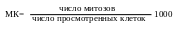 На микропрепаратах корня лука подсчитайте количество делящихся и неделящихся клеток в нескольких полях зрения (около 1000 клеток). Определите митотический коэффициент (МК) в промилле (‰) по формуле: