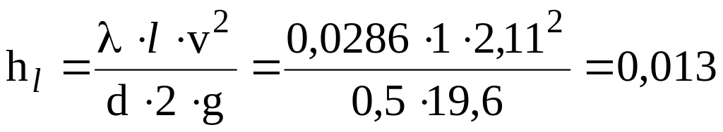 Втрати напору на тертя визначаємо за формулою Дарсі-Вейсбаха (4.12)
