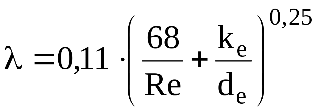 Оскільки Re>Reгр, то коефіцієнт опору тертя визначається за формулою Шифринсона (4.49)
