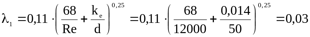 Визначимо коефіцієнт гідравлічного тертя за формулою