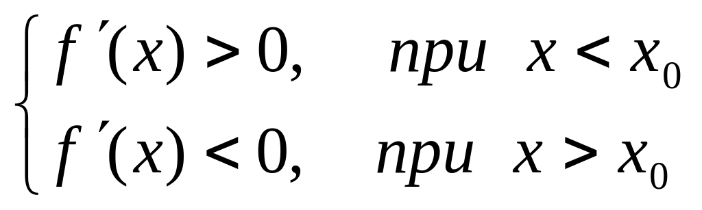 Достаточное условие существования экстремума. Пусть - критическая точка и функция непрерывна в этой точке. Если в некоторой окрестности точки производная меняет знак при переходе через точку , то - точка экстремума.
