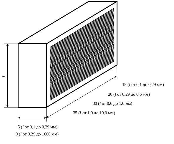 Плоскопараллельными концевыми мерами длины называют меры длины с постоянными значениями размера, который находится между двумя параллельными плоскостями у детали, имеющей форму прямоугольного параллелепипеда.