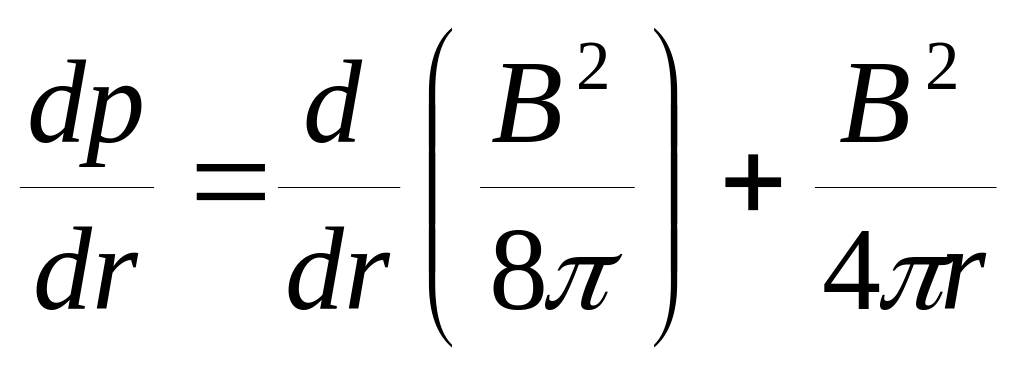 Первое слагаемое здесь представляет уже известный нам градиент магнитного давления, а второе учитывает силу, вызываемую «натяжением » силовых линий. Подставив полученное выражение в выписанное выше условие равновесия (2.2), имеем: