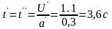 Беспериодты жылдамдық диаграммасын аламыз, үдеу а1=1 м/с2, бәсеңдеу а3=0,75м/с2, жылдамдық U'=U''=1,1м/с.