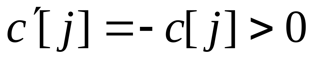 Если в задаче, приведенной к направлению оптимизации на минимум, коэффициент в целевой функции при j-й переменной отрицательный, то необходимо ввести замену переменных: