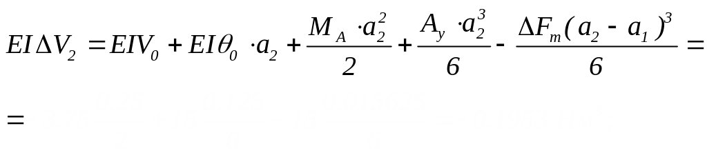 Расчетная схема для второго нагружения и определение перемещения сечения 1