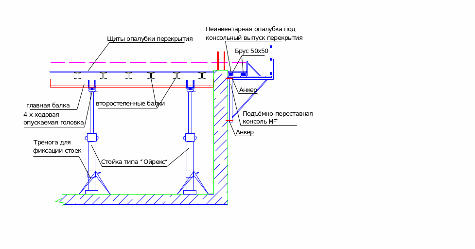 - •Узел опалубки под консольный выпуск перекрытия.