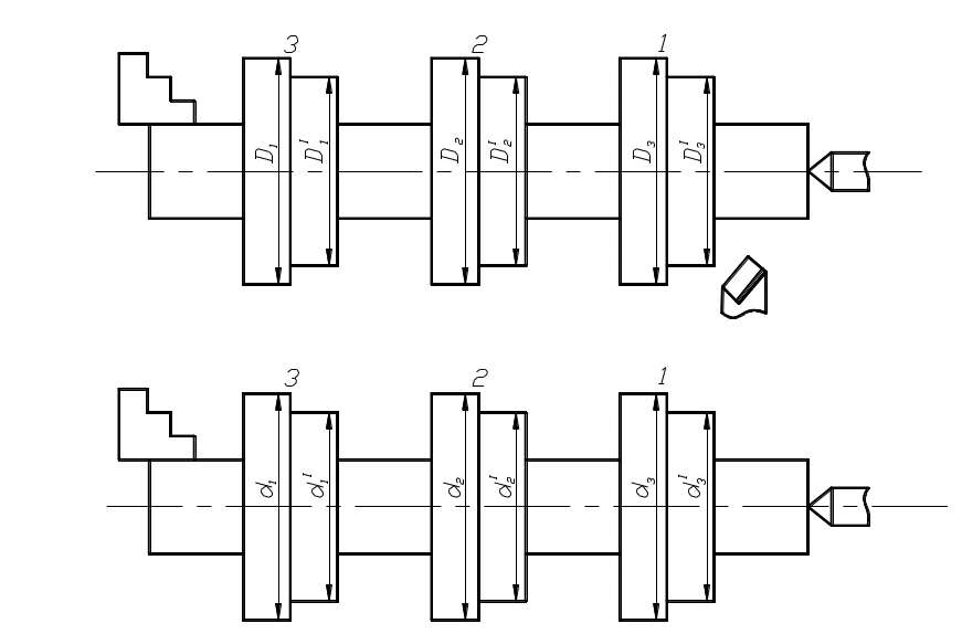 Таким образом формула (1) приобретает вид (соответственно для трех положений суппорта).
