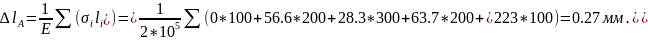 Так как ступени бруса выполнены из одного материала, удлинение свободного сечения А определяем по формуле: