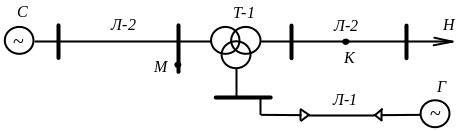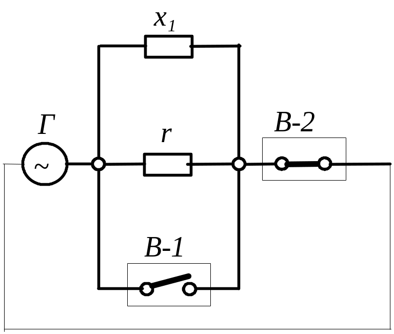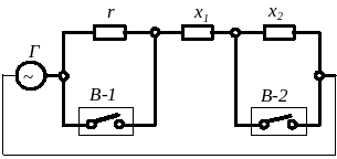1. В схемах 1-7 вимикачі В-1 та В-2 вмикаються; в схемі 8 вимикач В-1 вмикається, В-2 вимикається; в схемах 9, 10 вимикач В-1 вимикається, В-2 вмикається.