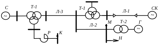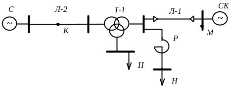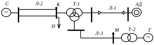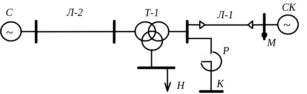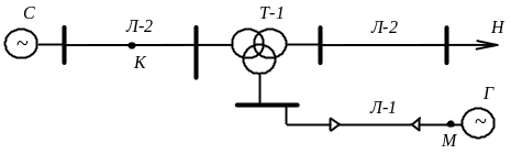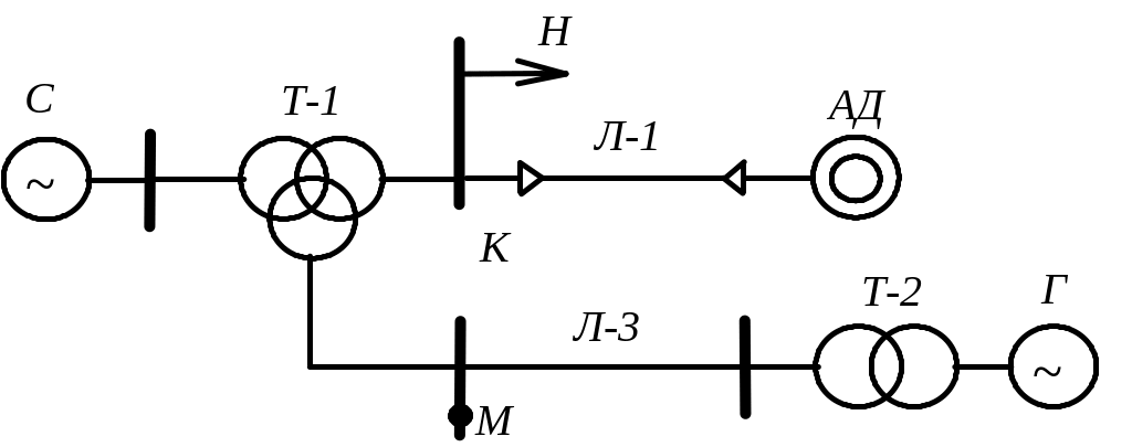 Задача 1. Для заданої схеми (рис.2.1) при трифазному короткому замиканні обчислити: