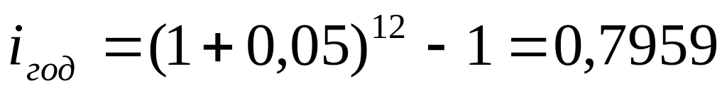 Замена в договоре номинальной ставки j при m-разовом начислении процентов на эффективную ставку iэф не изменяет финансовых обязательств участвующих сторон, т.е. обе ставки эквивалентны в финансовом отношении.