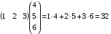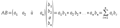 Определение. Произведением строки A из n элементов на столбец B из n элементов называется число AB, равное сумме произведений соответствующих элементов строки и столбца, т.е.