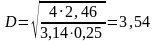 Диаметр реактора (D), м, рассчитываем по формуле: