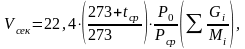 Реакционный объём смеси, проходящей через свободное сечение реактора, находим по формуле [2]: