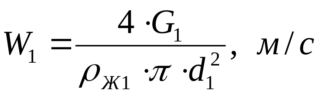 Скорости движения теплоносителей определяют по формулам:
