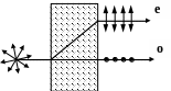 Всі прозорі кристали (окрім кристалів кубічної оптично-ізотропної системи) мають властивість так званого «двозаломлення світла», тобто роздвоєння падаючого променю (рис. 5) на ординарний (о) та екстраординарний (е) промені.