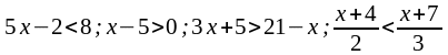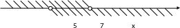 теңсiздiктер жүйесiнiң шешiмдер жиыны (5;7) аралығы.