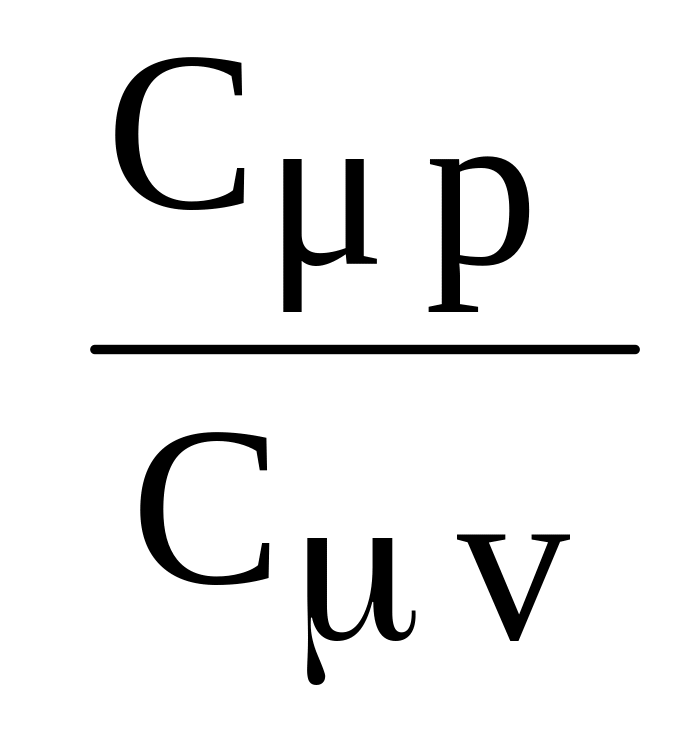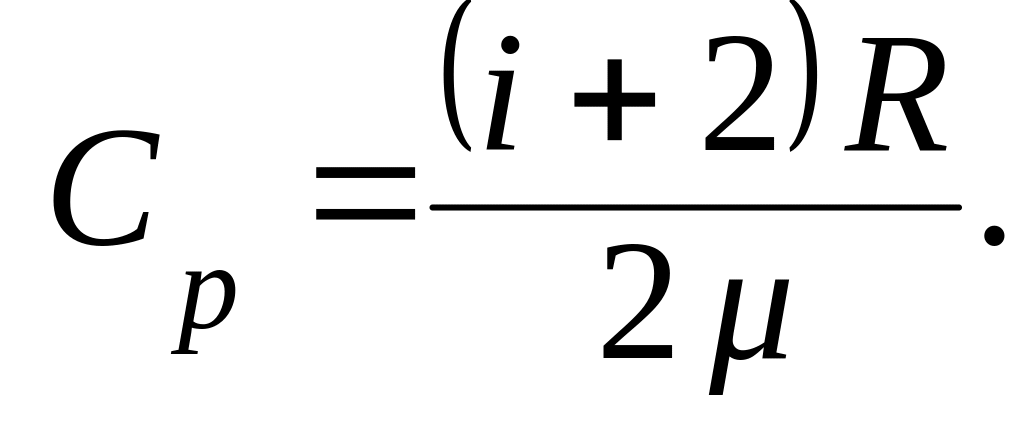 ● Удельные теплоёмкости газа при постоянном объёме (Сv) и при постоянном давлении (Сp):