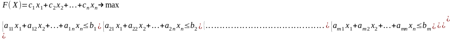 1) если целевая функция исходной задачи формулируется намаксимум, то целевая функция двойственной задачи — на минимум(и наоборот), при этом в задаче на максимум все неравенства в функциональных ограничениях со знаками« », в задаче на минимум — со знаками « »;