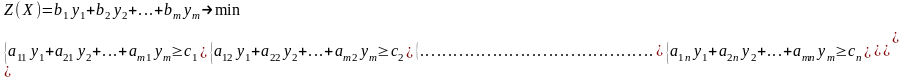 2) матрица коэффициентов при неизвестныхв системе ограничений двойственной задачи получается транспонированием соответствующей матрицы в системе исходной задачи;
